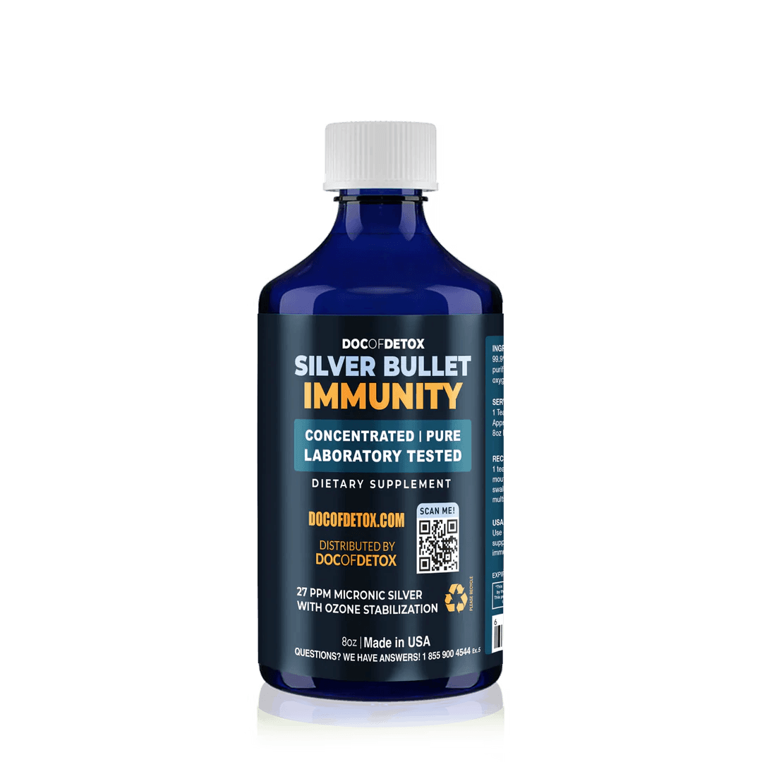 Silver Bullet Immunity is a trace mineral supplement made with 99.9% pure silver in distilled water. Designed for wellness routines, it is shelf-stable for up to 10 years and requires no refrigeration. This formula is intended to be taken in small daily servings to support general immune wellness, especially during seasonal transitions. It features a stable silver concentration and a simple, two-ingredient formulation.
